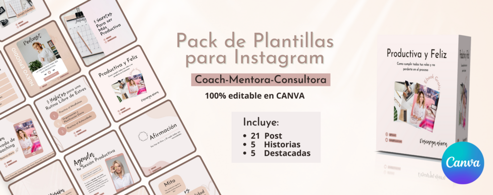 ¡Estoy emocionada de presentarte este increíble Pack editable para Instagram diseñado especialmente para impulsar tus servicios como Coach, Mentora y Consultora! ✨🌟